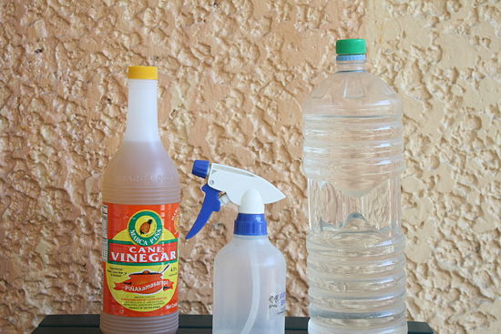 3- 4 قاشق غذاخوری آب لیمو یی که در کمی آب حل شده و یک گالن ( 3/7853 لیتر ) آب سرد شیر را در یک ظرف بزرگ و مناسب بریزید و خوب مخلوط کنید. بخشی از این محلول را در یک بطری آب فشان بریزید و استفاده کنید.